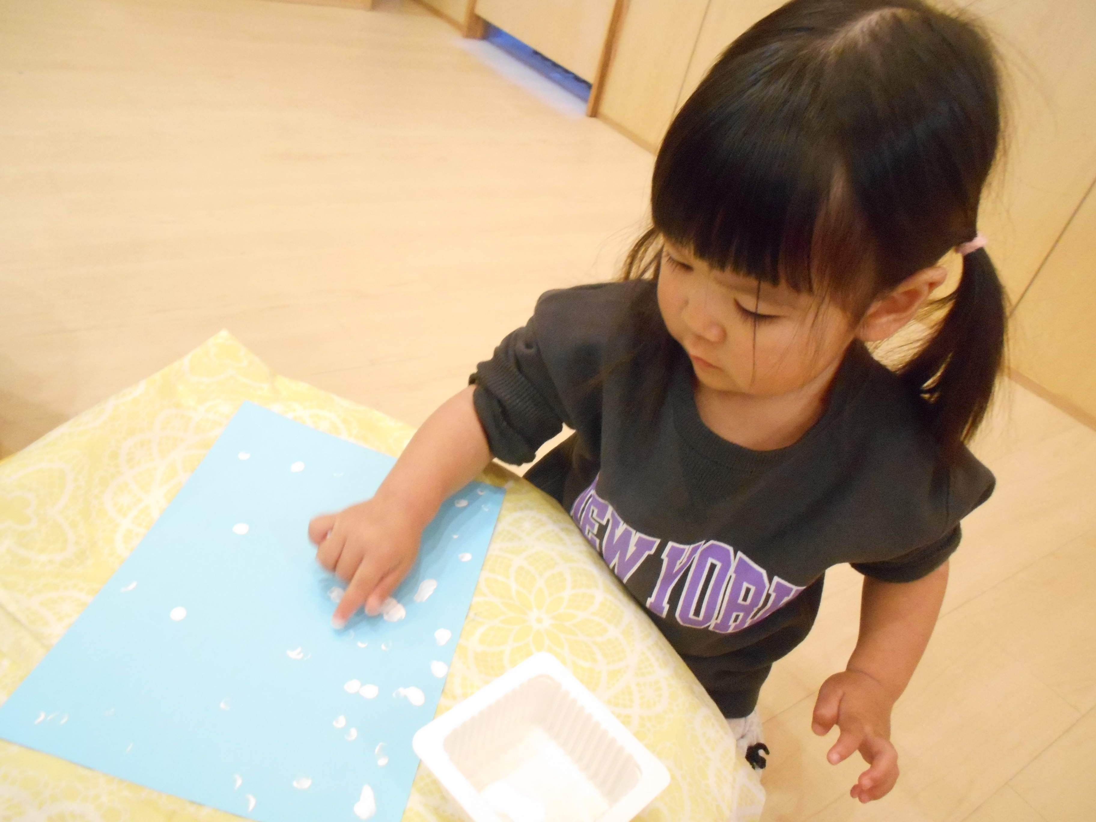 もちつきの杵に見立ててカラフルな布を上下にフリフリ🎵