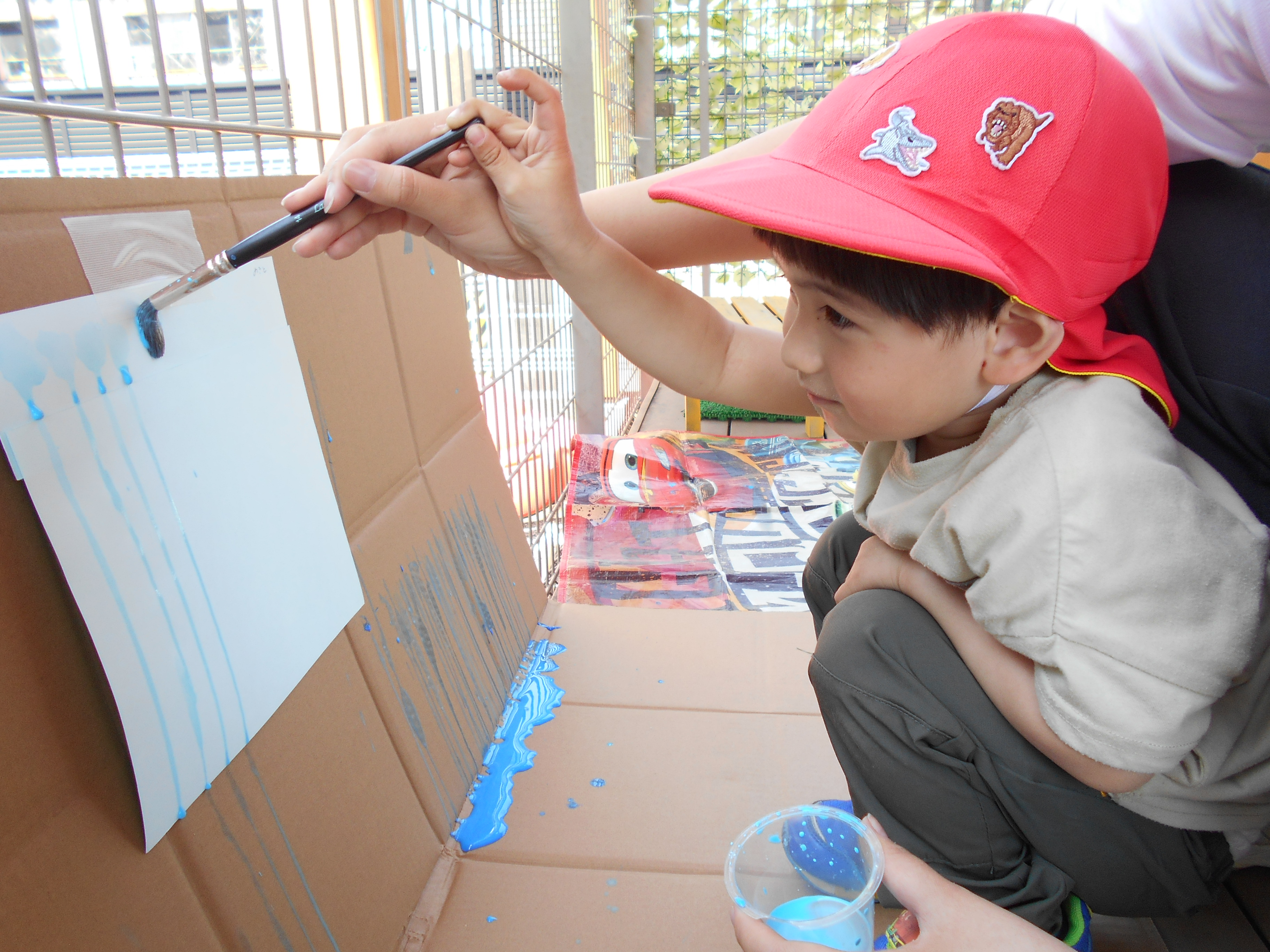 ぞう組は園庭で絵の具あそびをしました😊✨